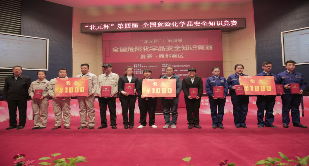 2018年12月7日,由中國石油和化學(xué)工業(yè)聯(lián)合會指導(dǎo),中國化學(xué)品安全協(xié)會、中國化工報社主辦,陜西北元化工集團(tuán)股份有限公司冠名,鄂爾多斯大路煤化工基地管委會協(xié)辦,國家能源寧夏煤業(yè)集團(tuán)有限責(zé)任公司承辦的“北元杯”第四屆全國危險化學(xué)品安全知識競賽西部區(qū)復(fù)賽在寧夏銀川寧東能源基地舉行。集團(tuán)公司受邀參加此次比賽,公司領(lǐng)導(dǎo)高度重視,經(jīng)過選拔,挑選出安全知識豐富、生產(chǎn)經(jīng)驗較強(qiáng)、業(yè)務(wù)能力突出的3名員工組成代表隊及20多人組成的啦啦隊參加比賽,并獲得了第三名好成績。