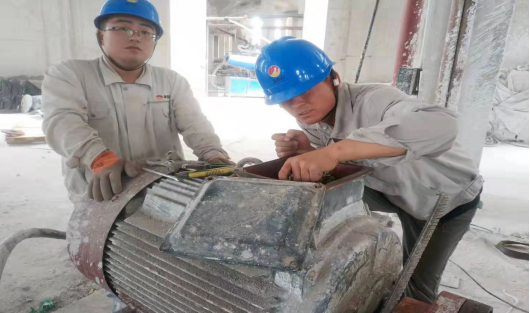 酷暑難當(dāng)!我還只是走走停停就已經(jīng)大汗淋漓,更何況我們可愛的工友們。進(jìn)入到電儀裝置現(xiàn)場,這些工友們,真的是恨不得將一個人分成兩個人用,他們是公司安全用電及技改的重要力量,這幾天,他們冒著酷暑,頂著作業(yè)銜接與催促,積極推進(jìn)檢修進(jìn)度,他們完成修復(fù)了1102皮帶拉繩開關(guān)及跑偏開關(guān)的檢修、完成了熟料庫頂2825M離心風(fēng)機(jī)及2622M斜拉鏈機(jī)電機(jī)及接線盒的檢修、完成了更換頭排風(fēng)機(jī)變頻柜分機(jī)以及二次配料底2111M,2031M,2025M斜槽風(fēng)機(jī)電機(jī)及接線盒的檢修。