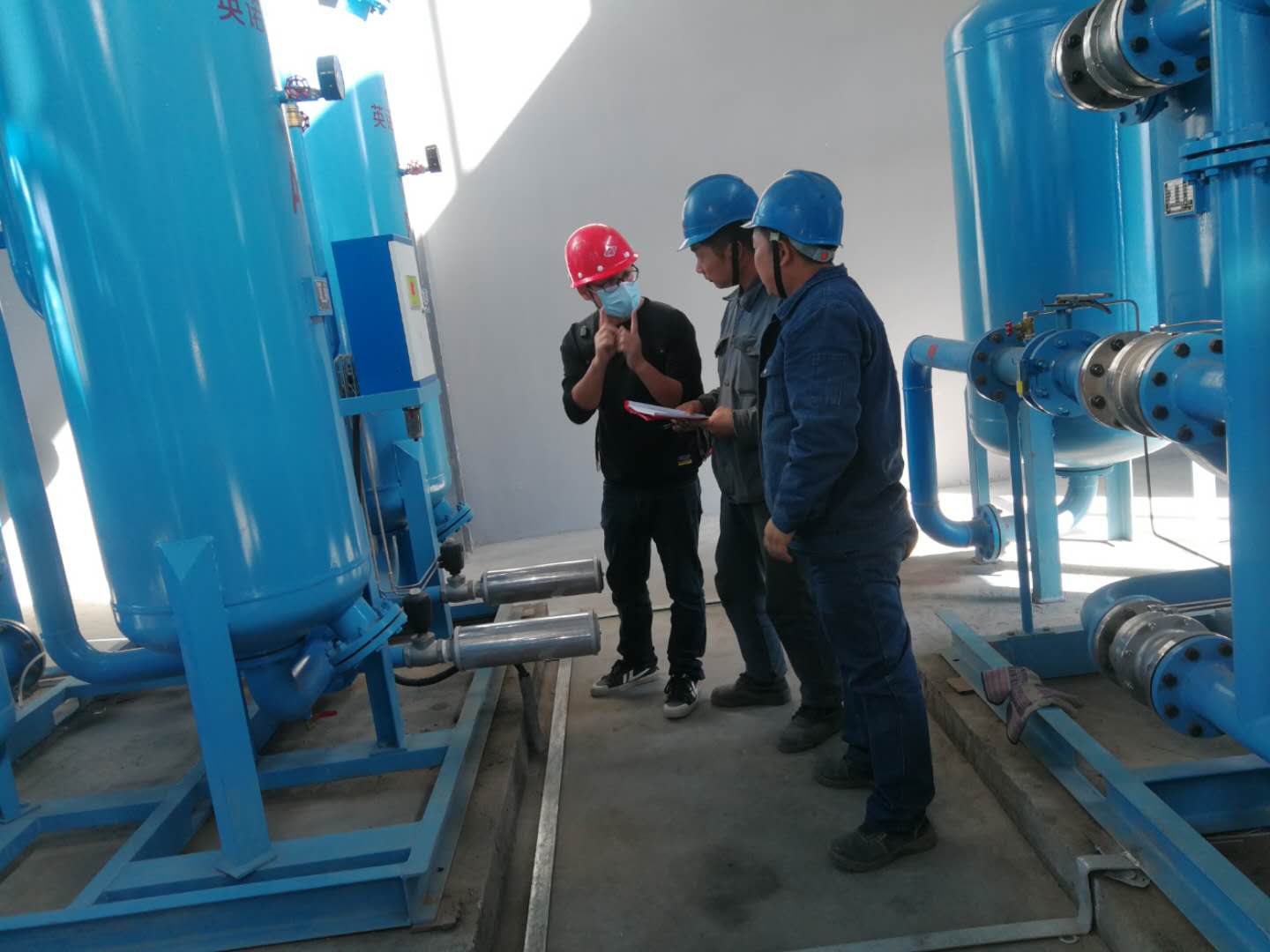 截止發(fā)稿前,空分制氮已經(jīng)開機(jī)打壓試車,發(fā)現(xiàn)漏點(diǎn)及時(shí)消除后再次重復(fù)對后系統(tǒng)儲罐設(shè)備打壓試車。試壓的同時(shí)本公司維修人員積極向廠家技術(shù)人員請教空分制氮設(shè)備的常見故障及處理方法。