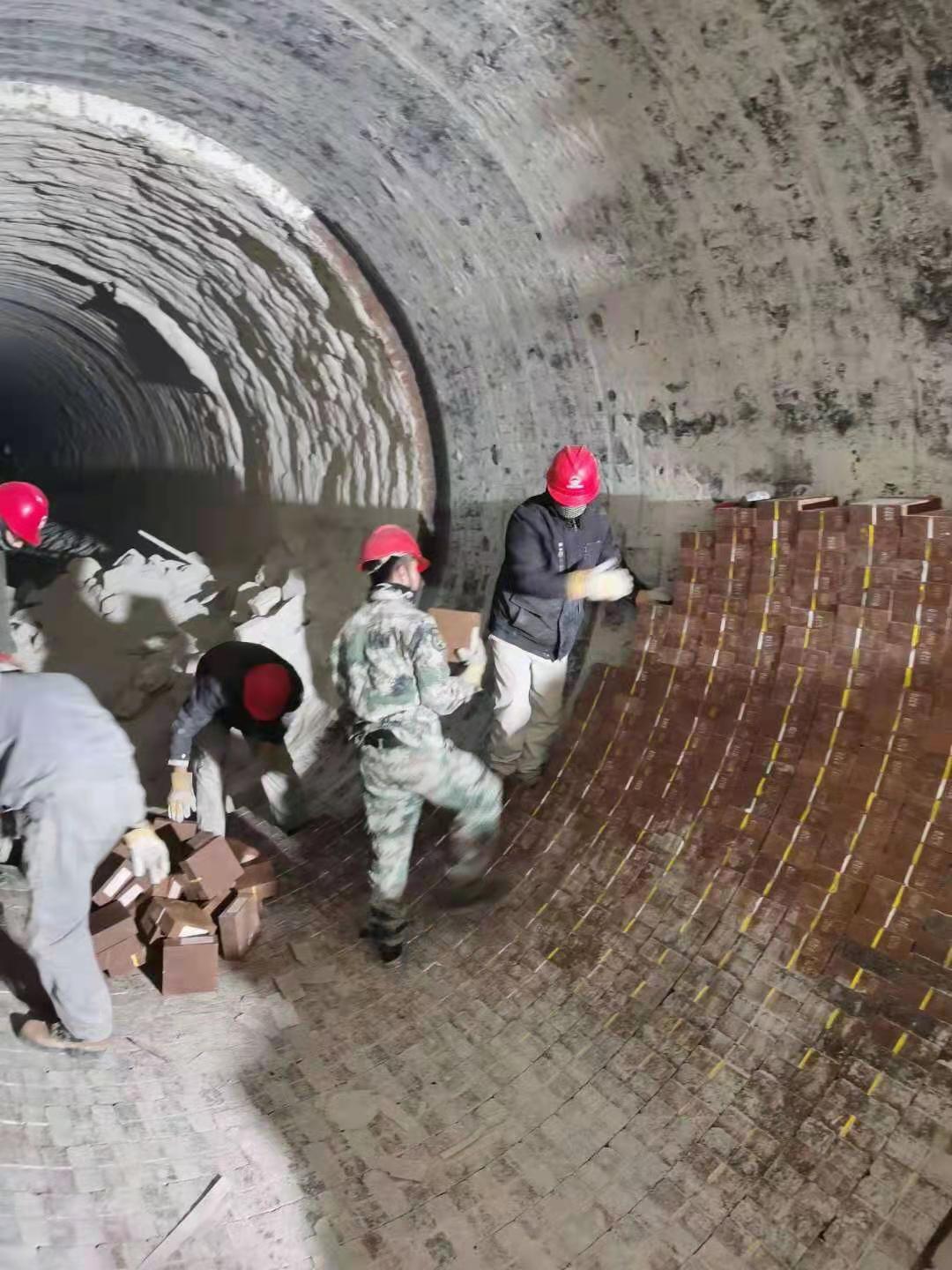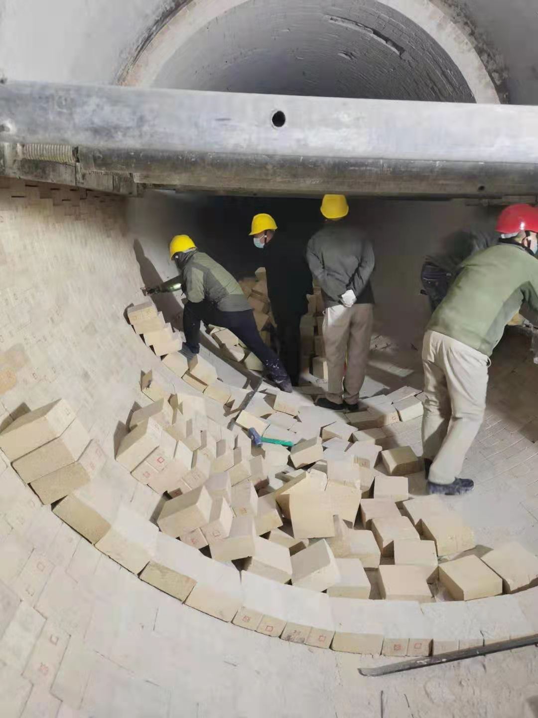 入窯鉸刀更換結(jié)束后,幾名維修工再一次細(xì)致的對(duì)鉸刀附屬設(shè)備進(jìn)行檢查,確保回轉(zhuǎn)窯開啟后入窯鉸刀能夠長(zhǎng)周期穩(wěn)定運(yùn)行。回轉(zhuǎn)窯內(nèi),平時(shí)的崗位巡檢操作工變身砌磚師傅,對(duì)窯磚進(jìn)行砌筑。大家配合默契,像極了從事砌磚行業(yè)多年的老師傅。窯頭平臺(tái)上,頂著寒風(fēng)搬磚的是各裝置協(xié)調(diào)的員工。一方有難八方支援,不管回轉(zhuǎn)窯還是電石爐,都是資源再生公司的設(shè)備。哪兒檢修,其他裝置馬上協(xié)調(diào)人員配合。一次檢修就是一次考驗(yàn),不僅要保安全保進(jìn)度,還要保證檢修質(zhì)量。各級(jí)管理人員在保證安全的前提下對(duì)窯磚砌筑質(zhì)量進(jìn)行檢查,確保檢修質(zhì)量。
