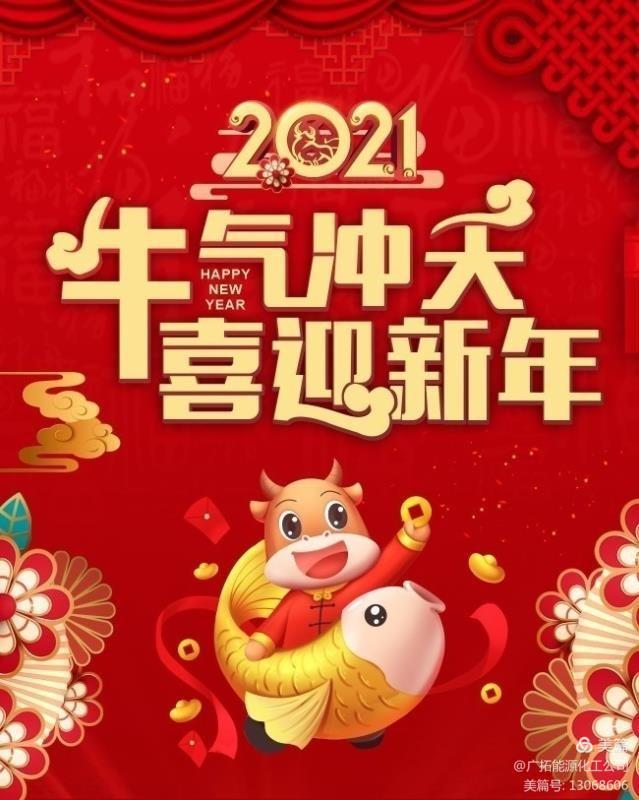 金牛奮蹄開錦繡,牛耕年豐又一春。值此農(nóng)歷辛丑牛年到來之際,廣拓化工公司總經(jīng)理賈存富攜公司領(lǐng)導(dǎo)班子向全體員工和給予化工公司鼎力支持的各級(jí)領(lǐng)導(dǎo)、朋友致以衷心的感謝和良好祝愿,祝大家在新的一年里牛氣沖天,身心健康,萬事如意!