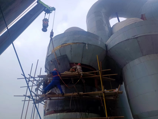 為了保證產(chǎn)品質(zhì)量、⽣產(chǎn)穩(wěn)定、設(shè)備⾼效運(yùn)⾏。當(dāng)接到任務(wù)的那一刻起,全體參“戰(zhàn)”人員,圍繞補(bǔ)焊“烘干破旋風(fēng)筒,穩(wěn)定窯生產(chǎn)”這一工作重心,迅速集結(jié),在總經(jīng)理吳紅衛(wèi)同志的帶領(lǐng)下,公司領(lǐng)導(dǎo)班子、安環(huán)生產(chǎn)科、成品裝置等管理人員一邊召開現(xiàn)場研判分析會,定方案、備材料,定人員;一邊圍繞搶修任務(wù),按照檢修周期以“應(yīng)修盡修、應(yīng)檢盡檢”的原則要求,舉一反三,見縫插針,開展總動員,做好各臨時作業(yè)區(qū)檢修⽅案和推進(jìn)工作,周密組織⼈⼒物⼒投⼊到檢修之中。清理電收塵積灰、檢查更換電收塵極絲、更換大布袋收塵器濾袋、清理預(yù)熱器結(jié)皮、碎化窯內(nèi)結(jié)蛋等⼤⼩20余項檢修任務(wù),集⾃⾝⼒量,同⼼協(xié)⼒、不畏苦累,全體參“戰(zhàn)”人員36⼩時晝夜不停,全⼒以赴投身到檢修當(dāng)中,于8月17日傍晚21:20分順利完成此次搶修。