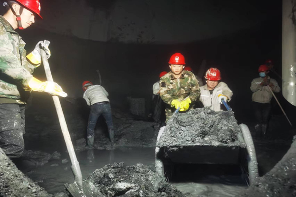 脫硫塔檢修現(xiàn)場,塔內(nèi)料液堆積多,空間小,清理難度大,只能用小推車一車一車的拉運到人孔門,再一鍬一鍬的鏟上鏟車,工作量非常大,只有熱力裝置的人很難在檢修時間內(nèi)完成料液清理工作。公司總經(jīng)理、副經(jīng)理守在現(xiàn)場,協(xié)調(diào)各科室、裝置人員協(xié)助清理,兩天兩夜沒有間斷,在滿是泥水的脫硫塔內(nèi)來來回,奔跑了無數(shù)次,污泥沾滿了全身每一個地方,不知是汗水還是泥水浸濕了衣服,他們干活不分你我,不惜力氣,相互配合,安全高效的完成了料液清理工作,為下一步脫硫塔消漏、防腐做好鋪墊。