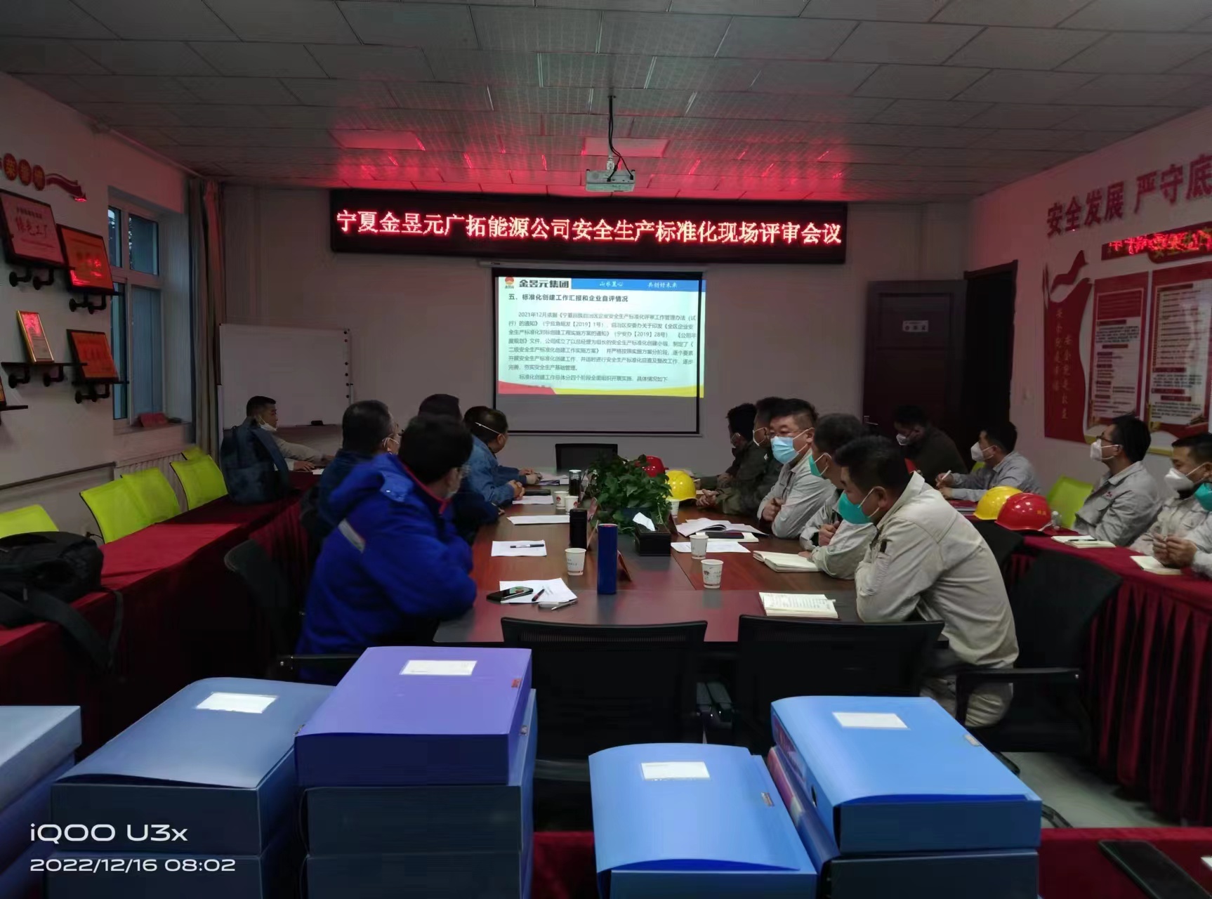 2022年12月15日,安全生產(chǎn)標(biāo)準(zhǔn)化評審專家一行5人,在固原市應(yīng)急局及管委會(huì)的陪同下,對金昱元廣拓能源有限公司二級標(biāo)準(zhǔn)化進(jìn)行達(dá)標(biāo)評審。固原片區(qū)管理中心副總經(jīng)理湯洪冰、廣拓能源總經(jīng)理賈存富等參加。