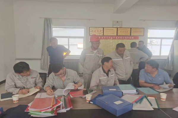 督查組一行首先觀看了巖鹽開發(fā)公司綠色礦山建設(shè)宣傳片,對公司做了整體了解。隨后,檢查了巖鹽開發(fā)公司制度建設(shè)和臺賬記錄,對公司應(yīng)急救預(yù)案和演練、綠色礦山建設(shè)、員工和外包人員培訓(xùn)教育與效果驗證、職業(yè)衛(wèi)生健康、隱患排查與治理、體系認(rèn)證等工作做了詳細(xì)了解,片區(qū)副總經(jīng)理湯洪冰、鹽業(yè)公司副經(jīng)理莊濤和采鹵副總工程師溫艷廷等就專家檢查過程中存在的疑問進(jìn)行了一一答復(fù)。