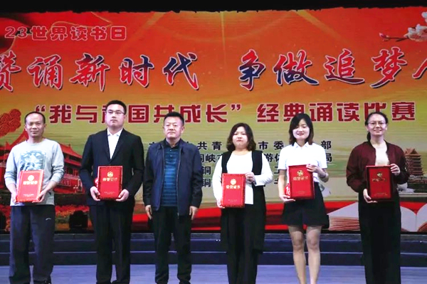 4月23日世界讀書日,由中共青銅峽市宣傳部、青銅峽市文化旅游體育廣播局、青銅峽市總工會(huì)聯(lián)合主辦,青銅峽市圖書館承辦的“贊頌新時(shí)代,爭(zhēng)做追夢(mèng)人——我與祖國共成長(zhǎng)”經(jīng)典誦讀比賽在青銅峽市影劇院隆重舉行。
