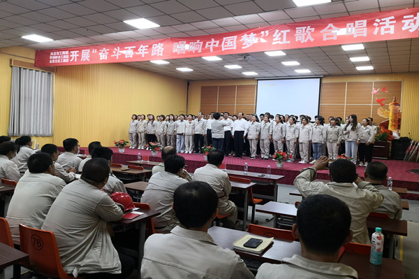 為迎接建黨100周年,開展了“奮斗百年路,唱響中國夢”紅歌合唱活動,在歌曲《不忘初心》的旋律中,主題黨日活動達(dá)到了高潮。