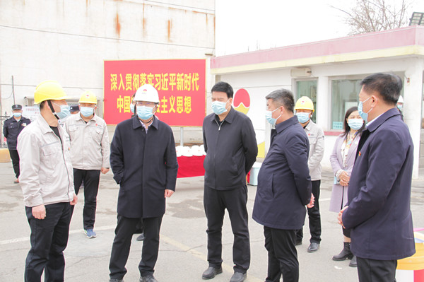 調(diào)研組深入一線,了解集團公司疫情防控情況,并聆聽工作人員宣讀《入廠安全教育》。