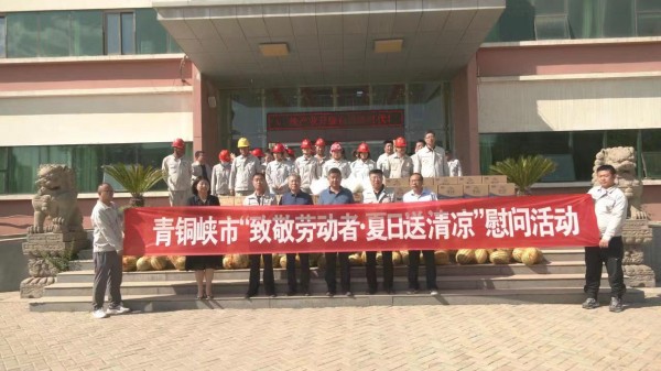 青銅峽市總工會和固原經(jīng)濟(jì)開發(fā)區(qū)總工會為集團(tuán)公司送來西瓜、礦泉水、金絲菊、冰糖等防暑物品,表達(dá)對企業(yè)一線員工關(guān)心和厚愛。